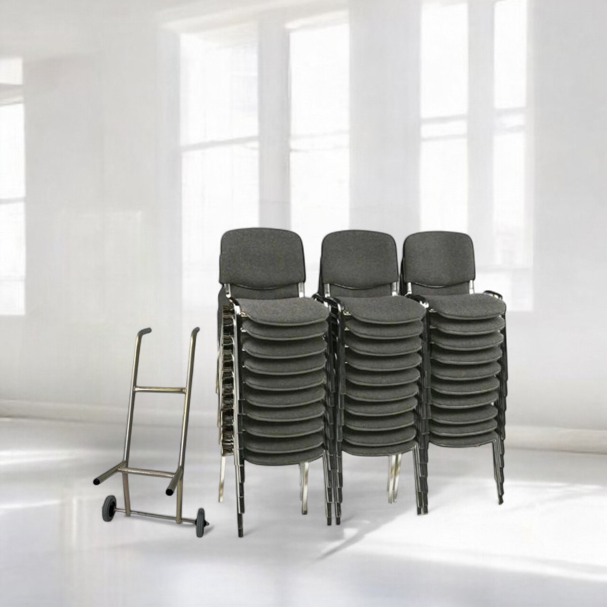 Gratis universalvogn inkluderet: Den medfølgende stabelstolevogn gør transport og håndtering af stolene nem og effektiv – plads til 10 stole pr. tur.