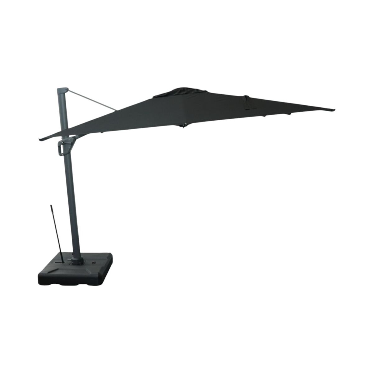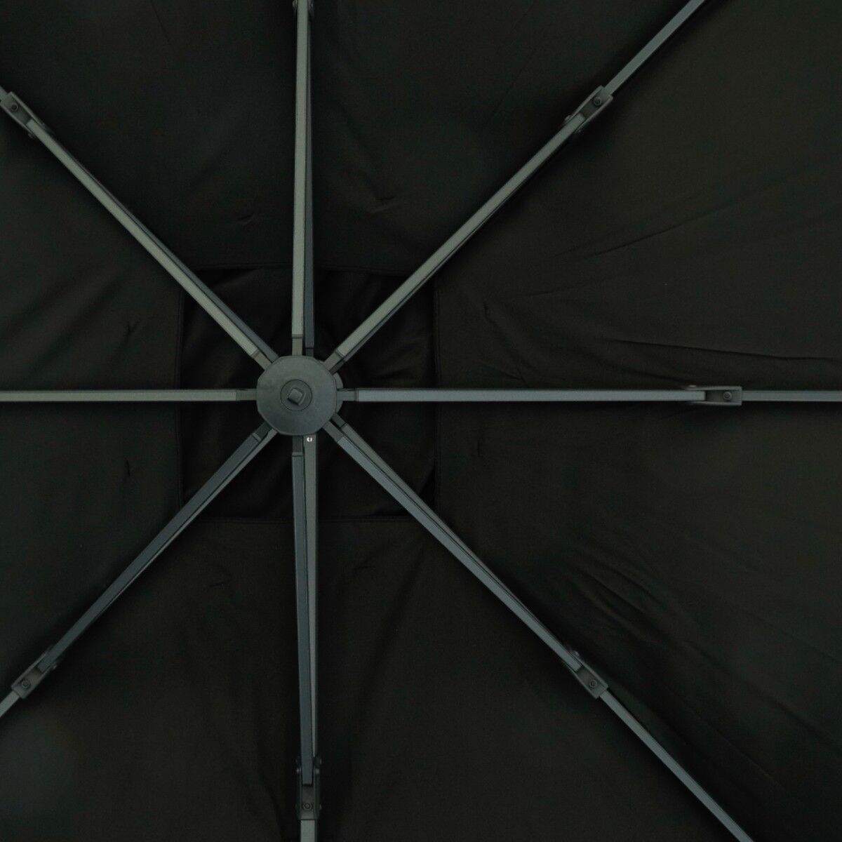Med en bredde på hele 3×3 meter dækker parasollen nemt større arealer og skaber komfortable skyggeområder til dine gæster. Det fritstående design med sidearm (også kendt som hængearm) sikrer, at hele arealet under parasollen kan udnyttes optimalt – uden generende midterstang.