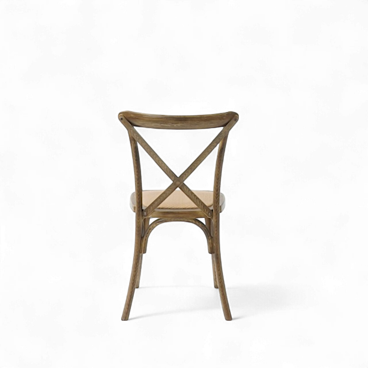 Denne Crossback stol med fletsæde er en favorit blandt caféer, restauranter, eventlokationer og lignende erhverv, hvor æstetik og funktionalitet går hånd i hånd. Den naturbrune trælook-finish og det klassiske fletsæde gør den til en stilfuld tilføjelse til enhver indretning – fra rustik og landlig til skandinavisk og moderne.