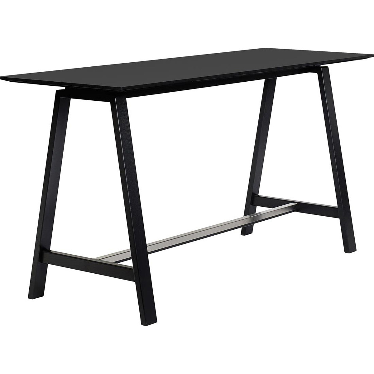 Med HT1 har byKATO taget det prisvindende T1-design til nye højder. Bogstaveligt talt. Bordet er en nyfortolkning af det traditionelle højbord med gavle. På en gang enkelt og karakterfuldt med den 30 mm tynde plade nærmest svævende over de to benbukke i massivt træ. Og med fodhvilerens rustfri stålkappe som en diskret understregning af den klasse, HT1 tilfører ethvert miljø. Uanset om det fungerer som meeting point for hurtige møder. Som centrum for personlige pusterum. Eller som det naturlige samlingspunkt for hele familien i hjemmets alrum.