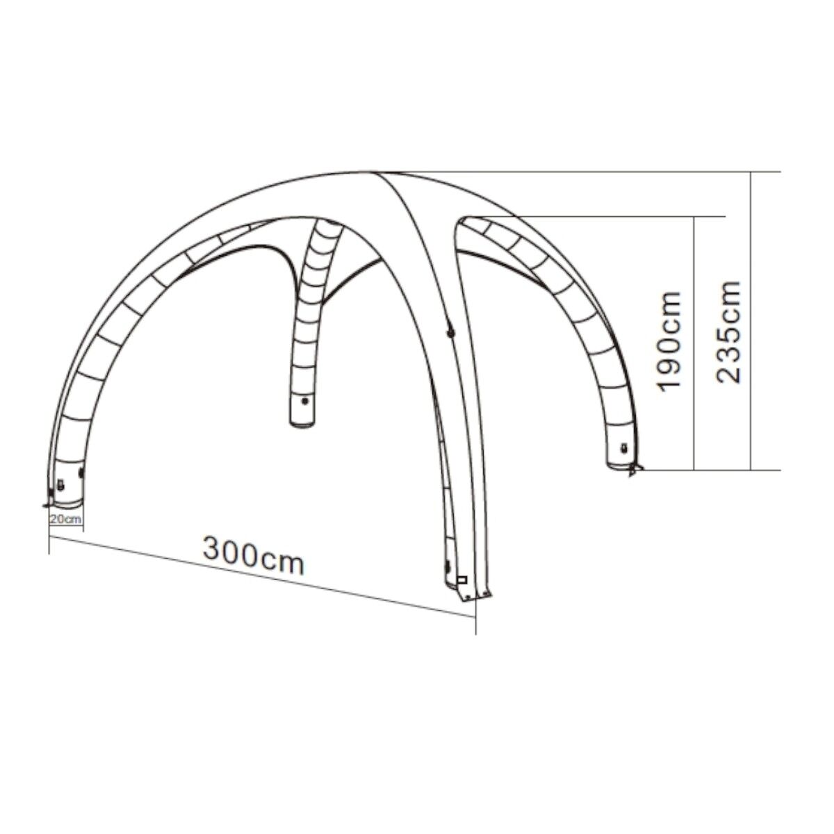 - Modulopbygning: Teltet kan forbindes med andre Air Cover-telte af samme eller forskellige størrelser via samlestykker, hvilket giver mulighed for fleksible opsætninger.
