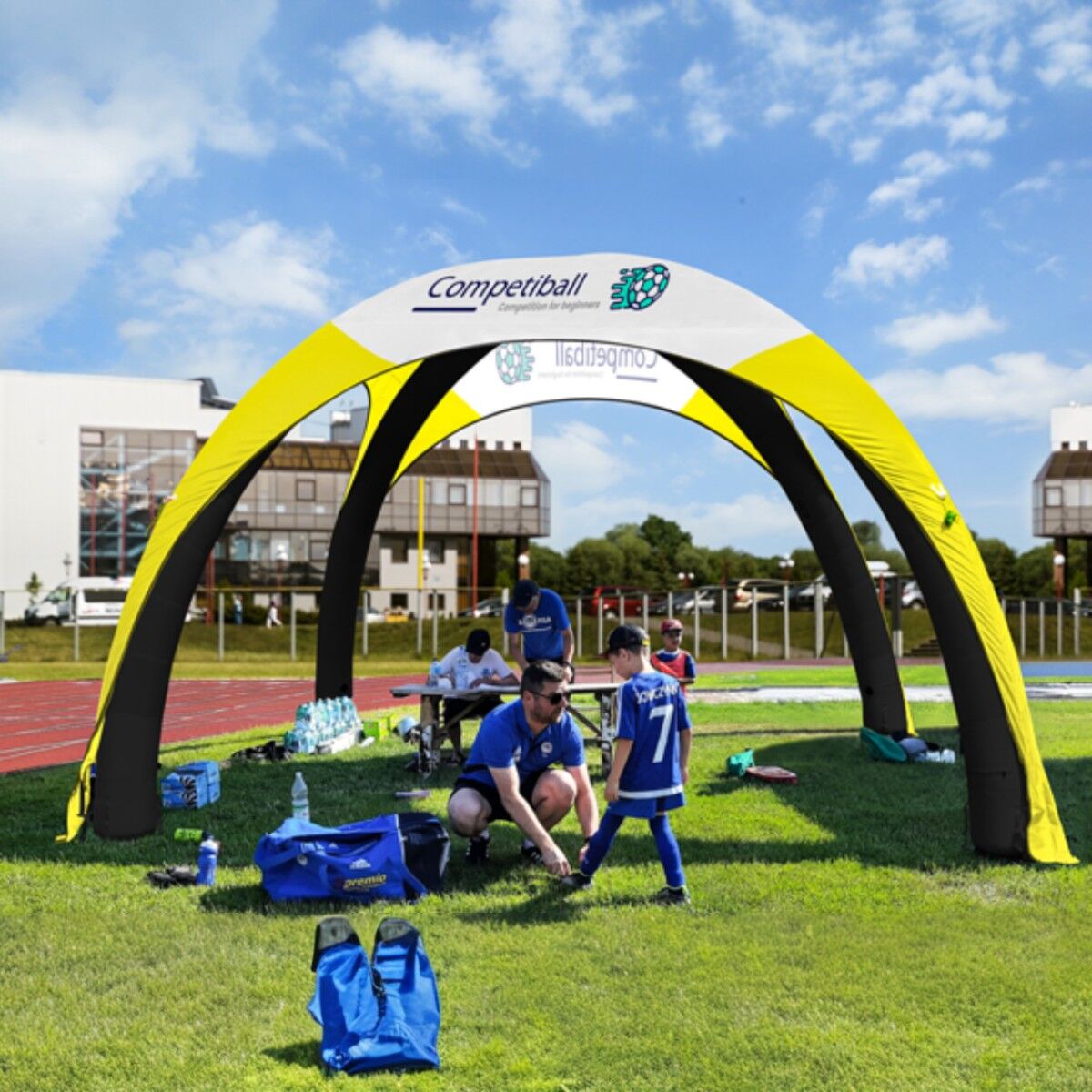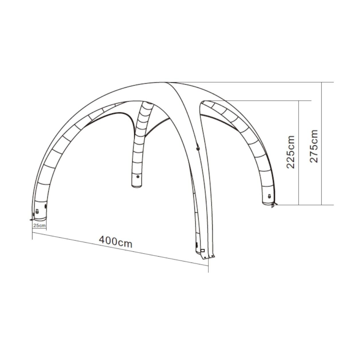 - Hurtig opsætning: Teltet kan oppustes på omkring 5 minutter af en enkelt person, hvilket gør det nemt og effektivt at bruge til både små og store arrangementer.