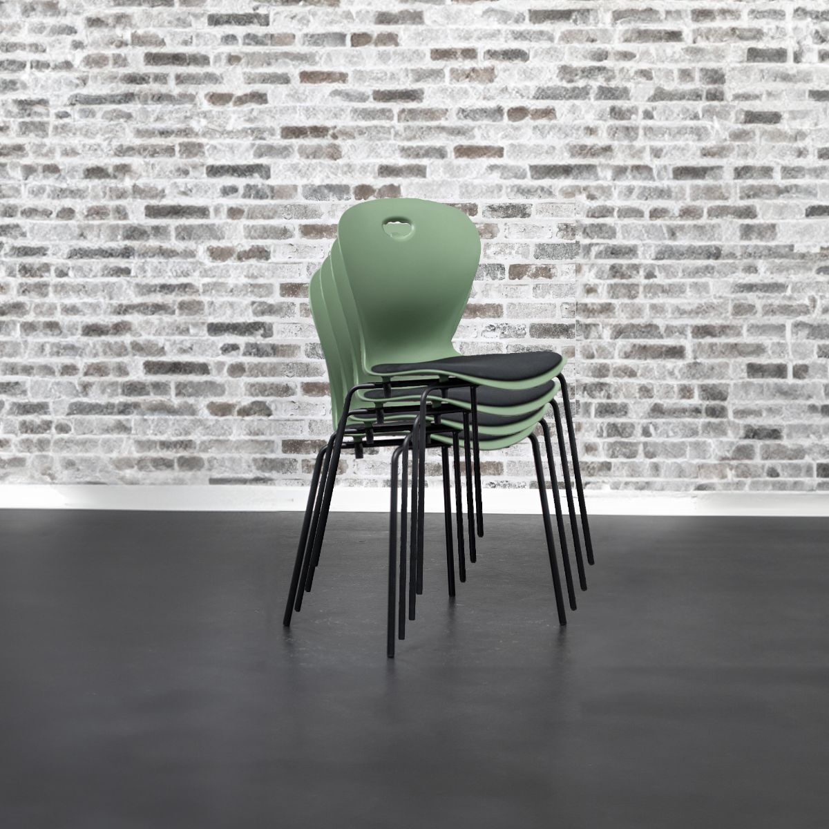 Sæt med 4 Karoline stabelstole med polster i sort eller grøn art.nr. 105867