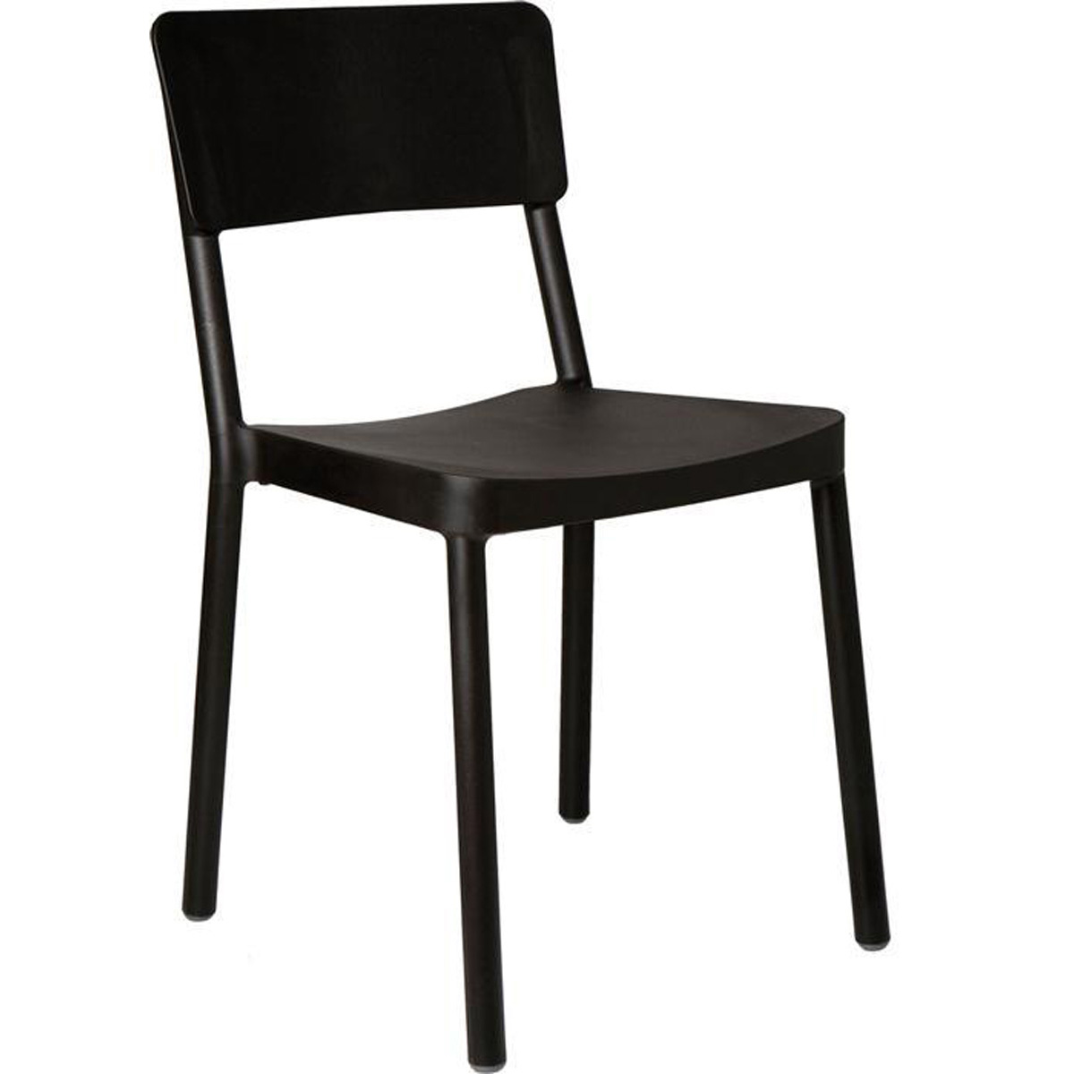 Stabelbar plaststol i nutidigt, let design. Til brug ude og inde.