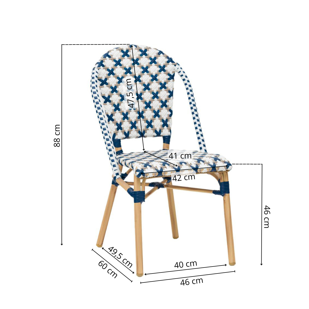 - Klassisk cafédesign: Det elegante fletmønster og afrundede stel tilfører atmosfære og autenticitet til din indretning.
