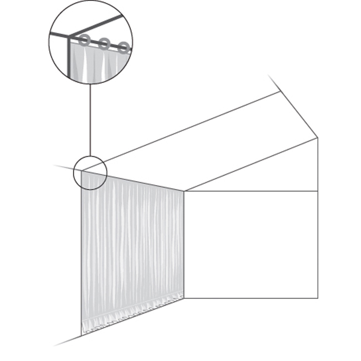 Innerlinings/Dekostof ophænges under teltdugen og giver et indtryk af eksklusivitet, renhed og varme.
