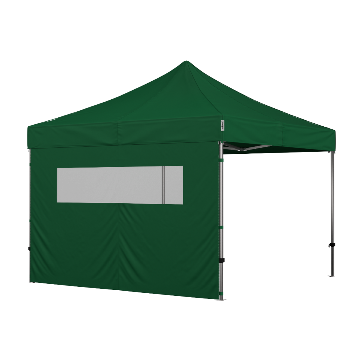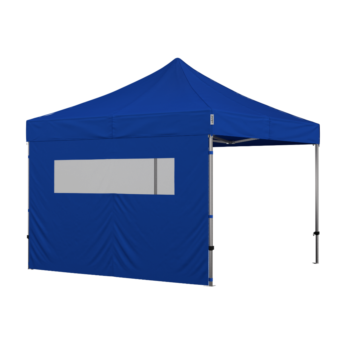 Lukket side med vindue lavet af gennemsigtig, kraftig plast. Siden giver ingen adgang til foldeteltet.