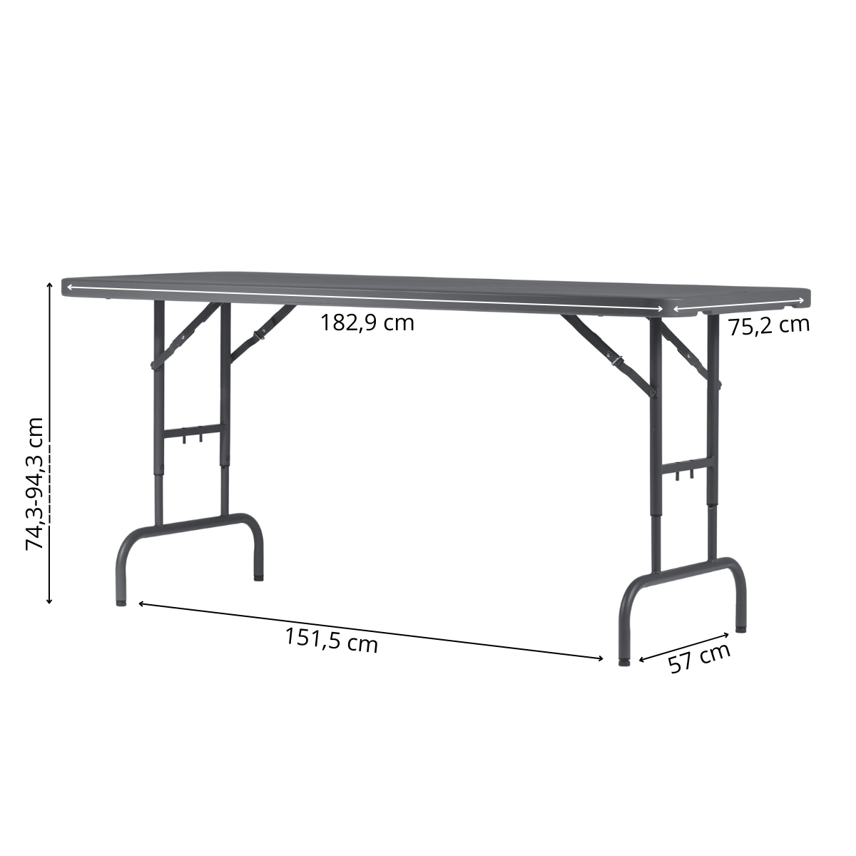 Zown borde er holdbare og slidstærke borde udført i kraftig 45 mm mørk grå HPDE, og med sammenklappeligt understel af pulverlakeret stål med manuel lås på benene, som øger stabilitet ved brug. Den hårdføre plast har ligeledes høj resistent mod fugt og små stød og meget lang levetid. Derfor medfølger der 10 års garanti på bordet.