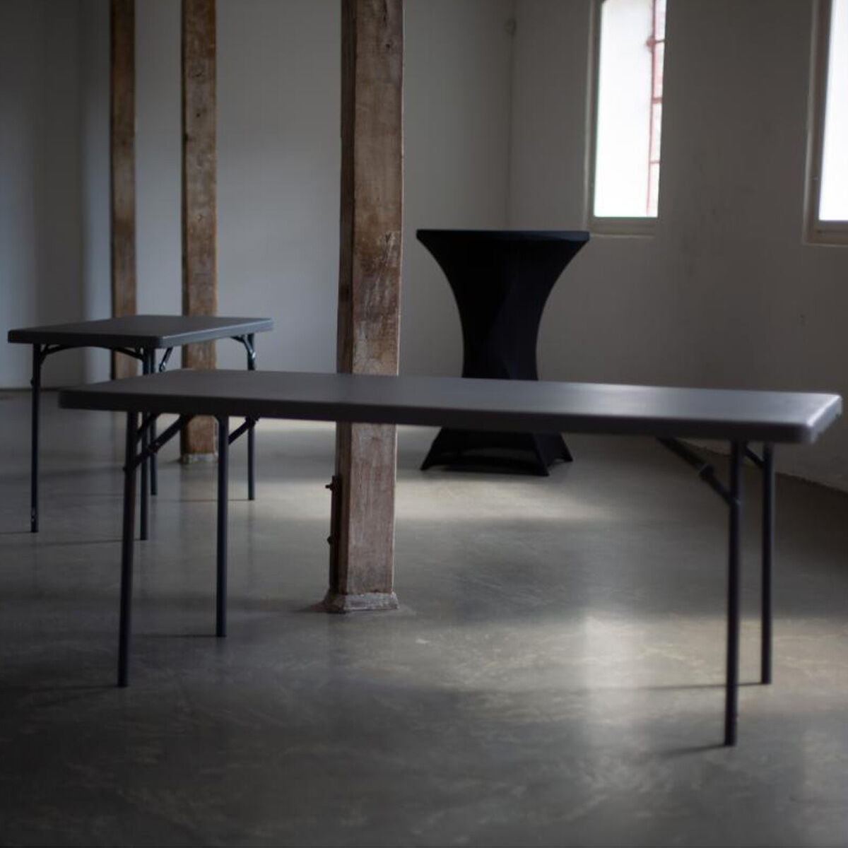Zown borde er holdbare og slidstærke borde udført i kraftig 45 mm mørk grå HPDE, og med sammenklappeligt understel af pulverlakeret stål med manuel lås på benene, som øger stabilitet ved brug. Den hårdføre plast har ligeledes høj resistent mod fugt og små stød og meget lang levetid. Derfor medfølger der 10 års garanti på bordet.